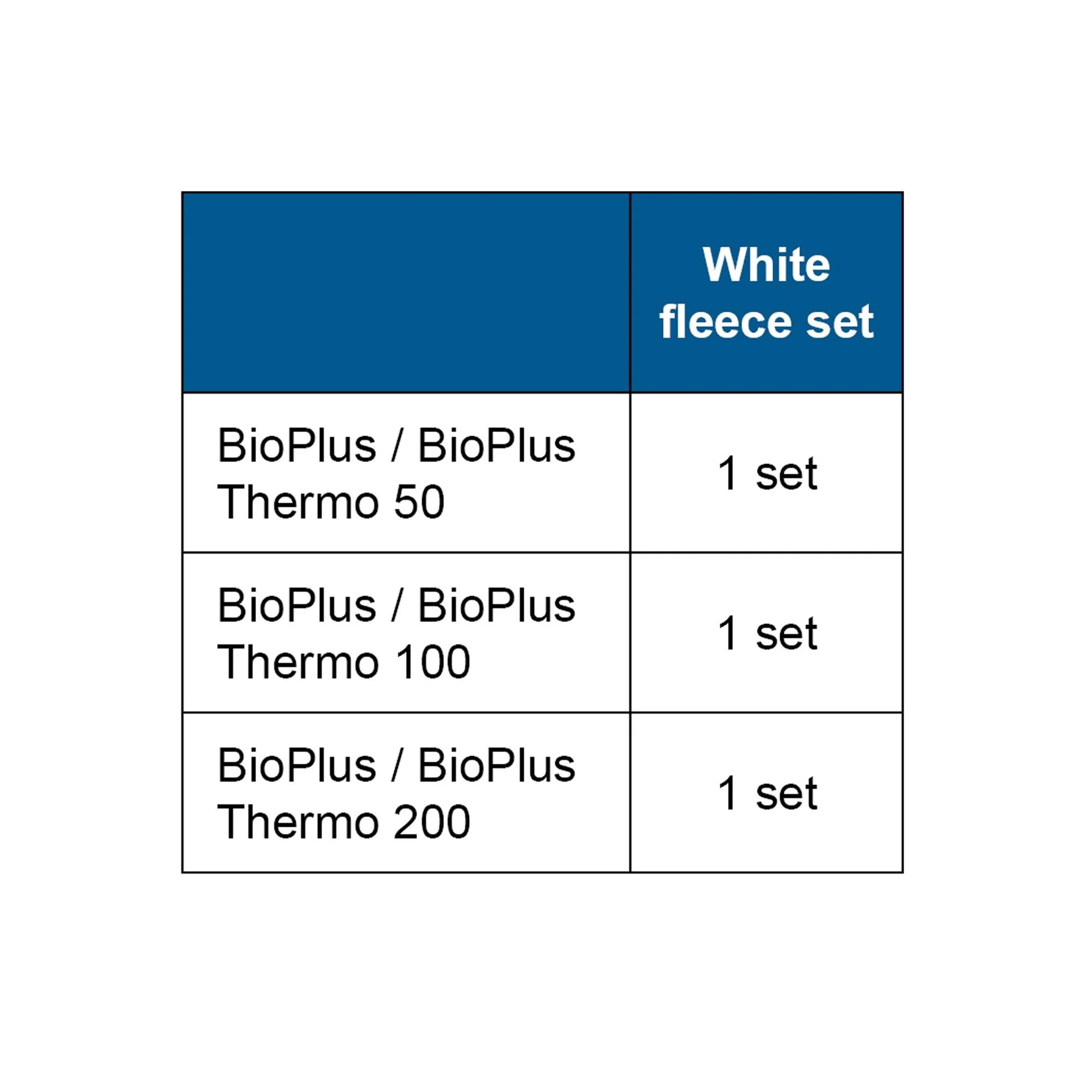 - The Filter Fleece Set BioPlus for the BioPlus 50, 100, or 200 and BioPlus Thermo 50, 100, or 200 includes two fleece replacement filters
